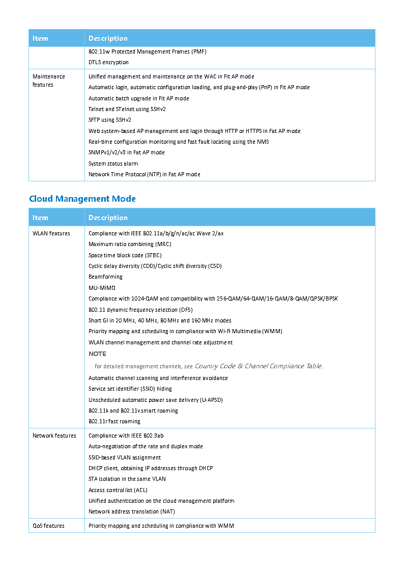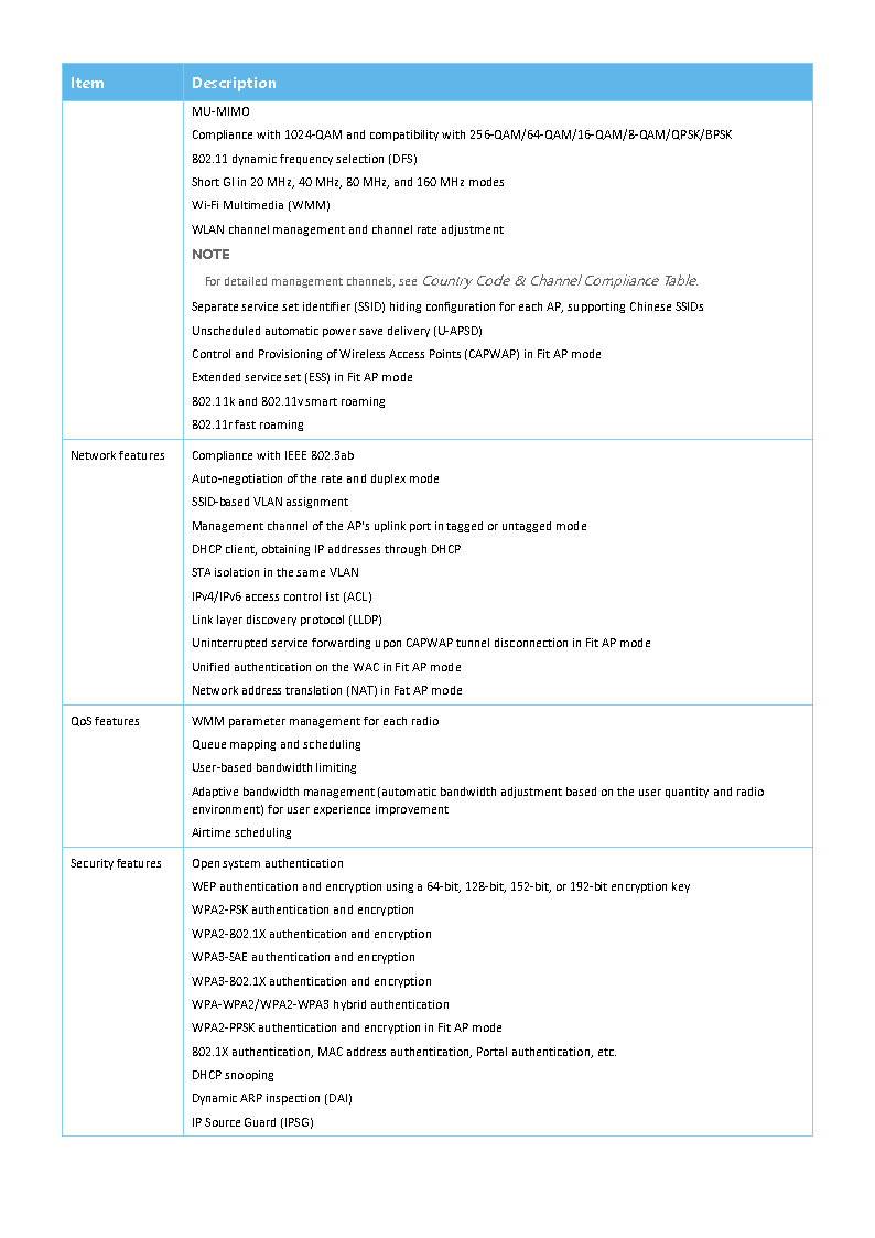 Huawei eKitEngine AP162E เป็น Access Point แบบ Wall Plate ที่ออกแบบมาให้บางเฉียบ ติดตั้งฝังผนัง (ขนาด 86 × 86 มม.) ใช้มาตรฐาน Wi-Fi 6 (802.11ax) รองรับการใช้งานพร้อมกันบนสองย่านความถี่ (2.4 GHz และ 5 GHz) แบบ 2×2 MIMO รวม 4 spatial streams ความเร็วสูงสุด 2.975 Gbps คุณสมบัติเด่น รองรับ Multi-user MIMO (MU-MIMO) ทั้งสองย่านความถี่ ช่วยให้ส่งข้อมูลกับหลายอุปกรณ์ได้พร้อมกัน รองรับ 1024-QAM เพิ่มขีดความสามารถในการส่งข้อมูล ให้ประสิทธิภาพดีกว่าเดิมเมื่อเทียบกับรุ่นก่อนหน้า รองรับแบนด์วิธ 160 MHz ทั้งสองย่าน เพื่อเพิ่มจำนวนช่องสัญญาณและลดการรบกวน เสาอากาศอัจฉริยะ (Smart Antenna) ที่ติดตั้งมาในเครื่อง เพื่อปรับการทำงานให้เหมาะกับการใช้งานและสภาพแวดล้อม ข้อมูลทางเทคนิคหลัก กำลังส่งสูงสุด: 20 dBm ทั้งย่าน 2.4 GHz และ 5 GHz จำนวนผู้ใช้งานสูงสุด: ประมาณ 128 คน แนะนำใช้ที่ประมาณ 48 คนเพื่อประสิทธิภาพที่ดีกว่า ขนาดตัวเครื่อง: 86 × 86 × 42.5 มม. น้ำหนักตัวเครื่อง: ประมาณ 0.14 กก. การจ่ายไฟ: รองรับ PoE (มาตรฐาน IEEE 802.3af) อุณหภูมิใช้งาน: 0°C ถึง +40°C รองรับการบริหารจัดการผ่าน Cloud / App (HUAWEI eKit App) หรือแบบ Local (EasyWeb / Wireless AC) ![]() ![]() ![]() ![]() ![]() |