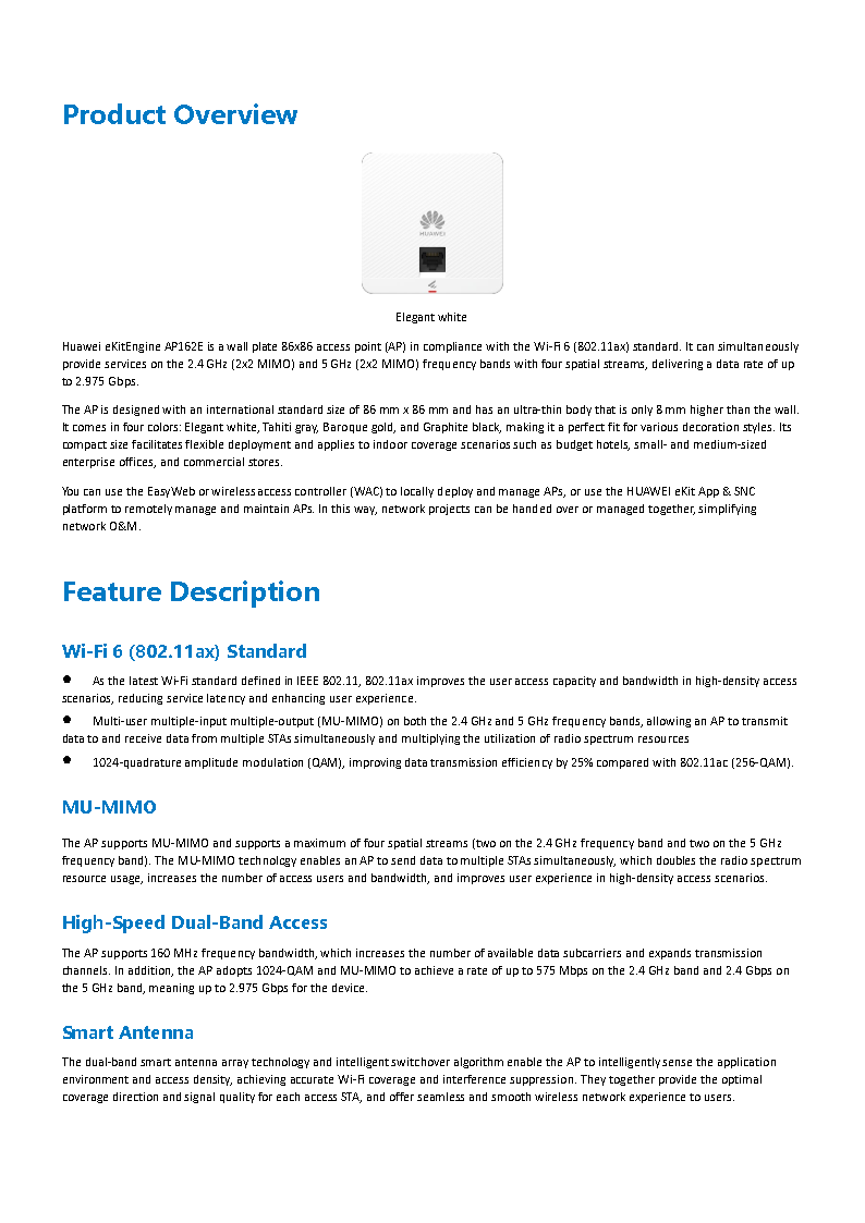 รายละเอียดสินค้า HUAWEI eKit AP162E